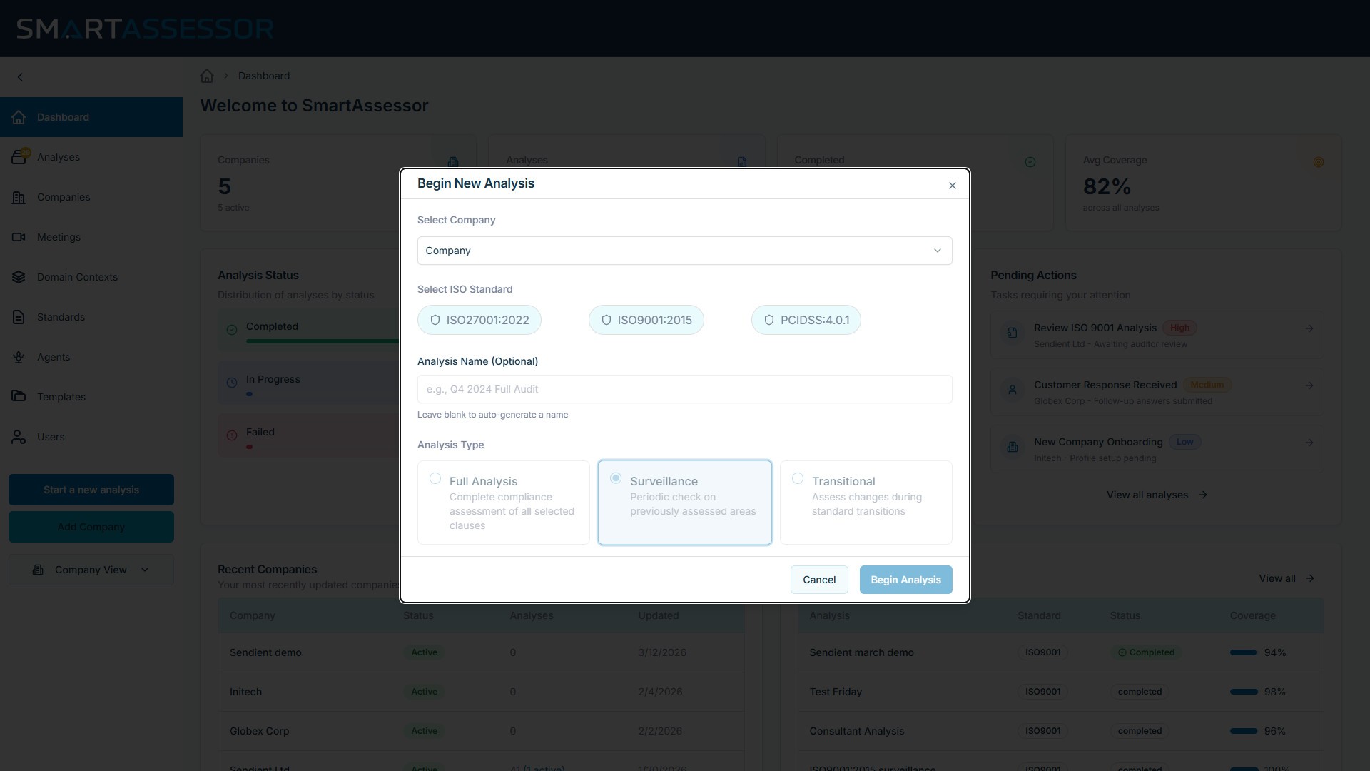 Clients upload documents, answer questions or record video responses, then AI automatically maps evidence across frameworks